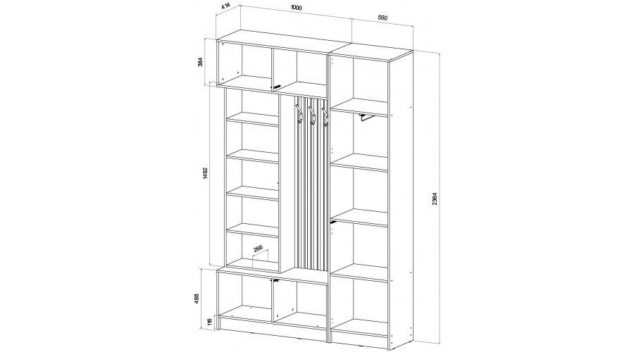 Наполнение: полки + штанга выдвижная